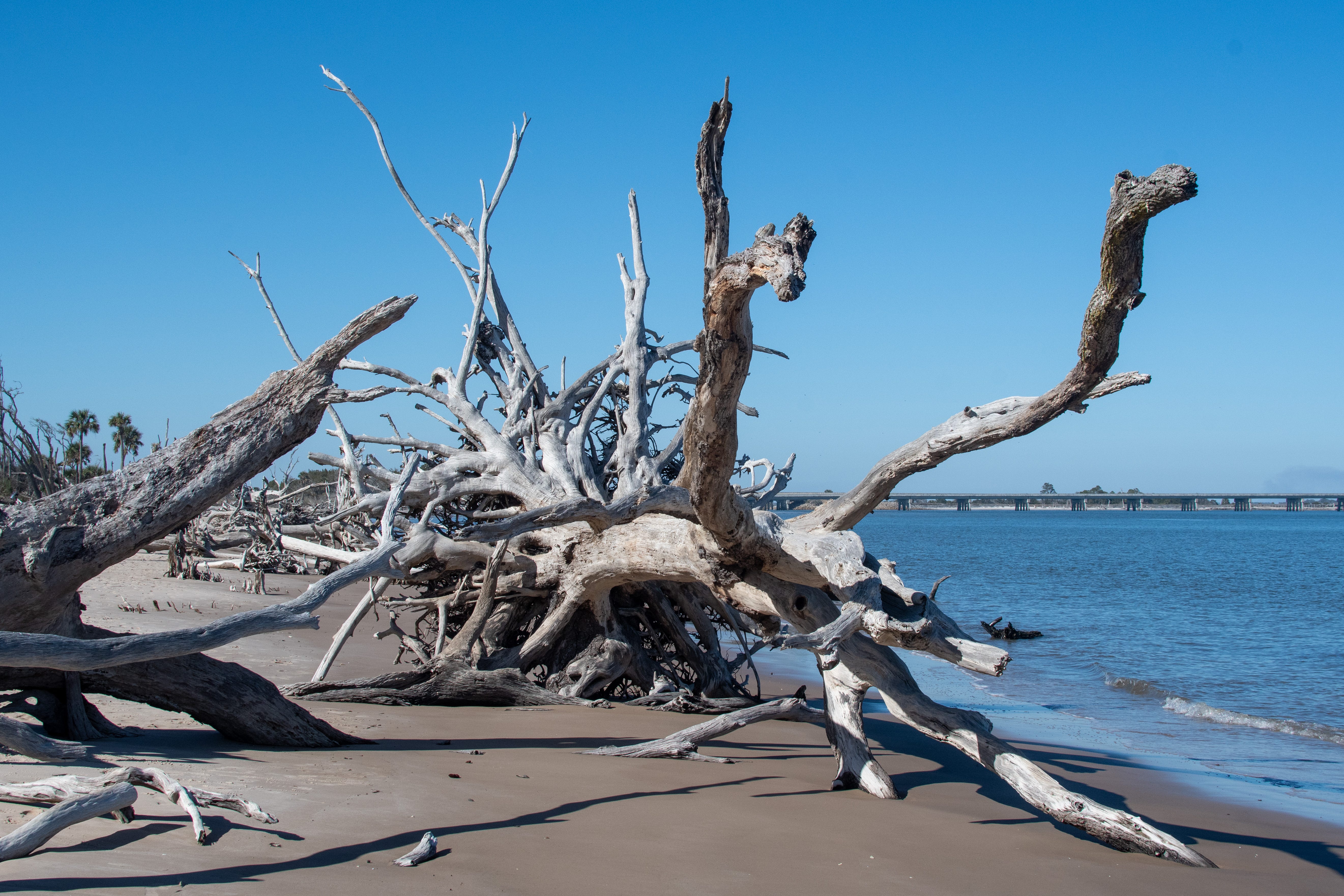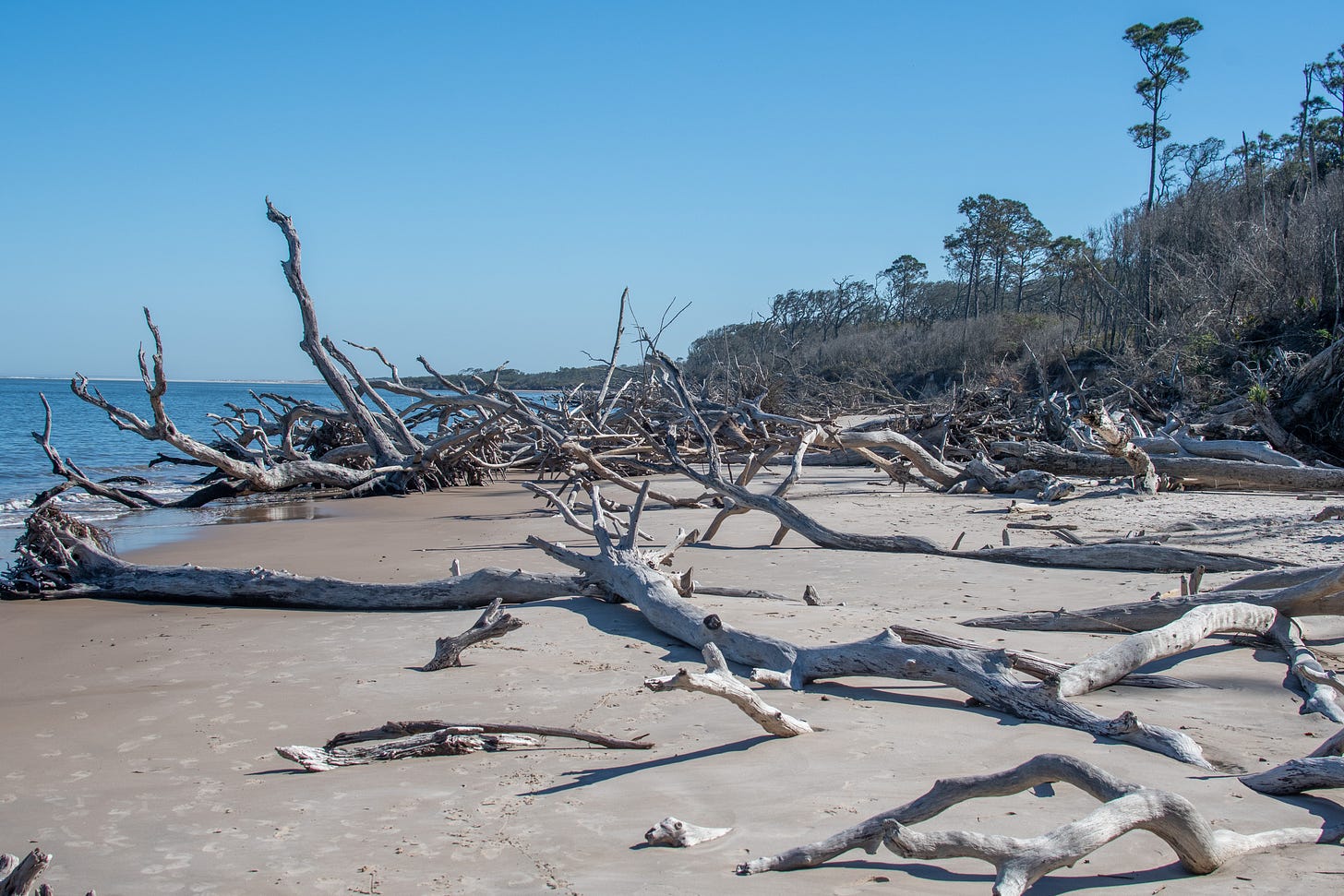 Boneyard Beach is a secluded, natural beach that is three miles long, and full of trees that have fallen on to the beach, and into the water. Storms and changing currents and tides all erode away at the cliffs on the island, washing away the sand under the trees’ roots, causing them to fall. Over time, as the contour of the land keeps changing, more trees may get washed away and crash on to the beach.