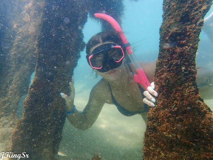 Snorkeling - Bring your own gear, or rent from one of the local surf shops. Swim in from the beach, or jump in from the pier. Schools of Sargent Major fish are fun to swim through. Up the beach, to the left of the pier are the bones of an old ship. Easy to reach from the beach.