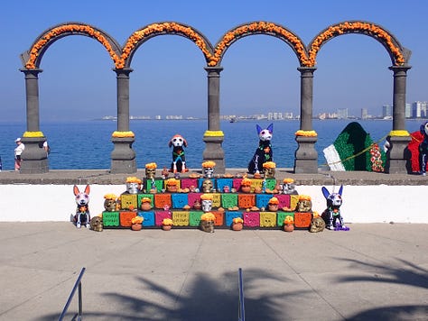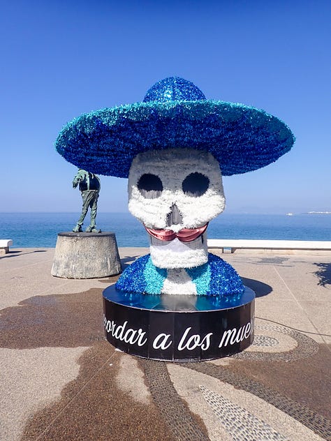 From Google: In 2025, Puerto Vallarta celebrated Day of the Dead with events from October 31 to November 2, including the Isla de los Muertos Festival on Cuale River Island on November 1, the Day of the Dead Parade on November 2, and various other festivals and city-wide celebrations like the Recuérdame Festival. These celebrations included altars (ofrendas), decorated skeletons (catrinas), and themed events at resorts and across the city. The decorations were still up on the Malecon, when we visited.