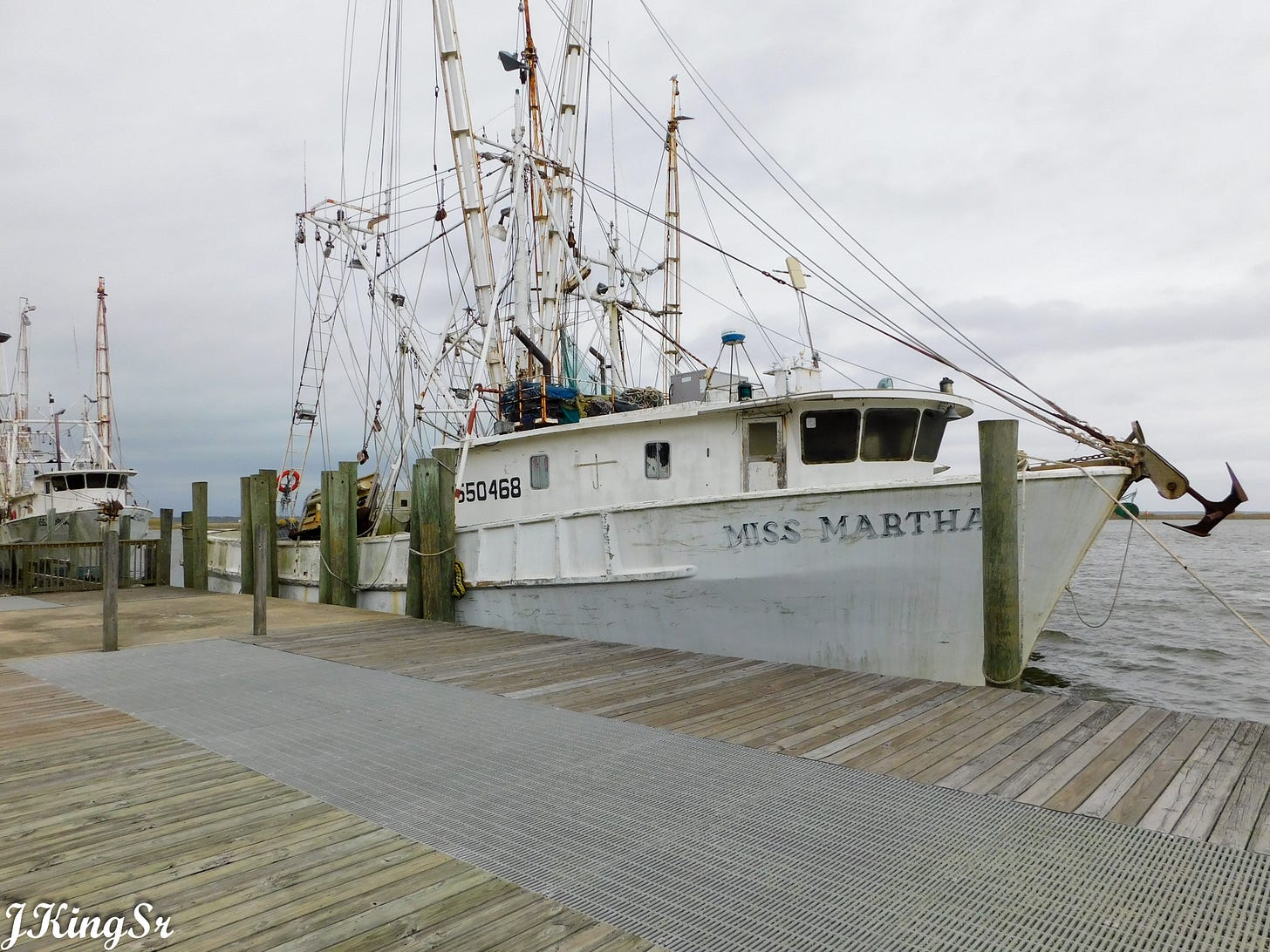 I stayed in the relatively large town of Apalachicola. It is one of the few remaining working fishing villages in Florida. By that I mean that most folks derive their income from fishing and shrimping and oystering (limited). It is a quiet, friendly little town with a quaint downtown that is right on the river.